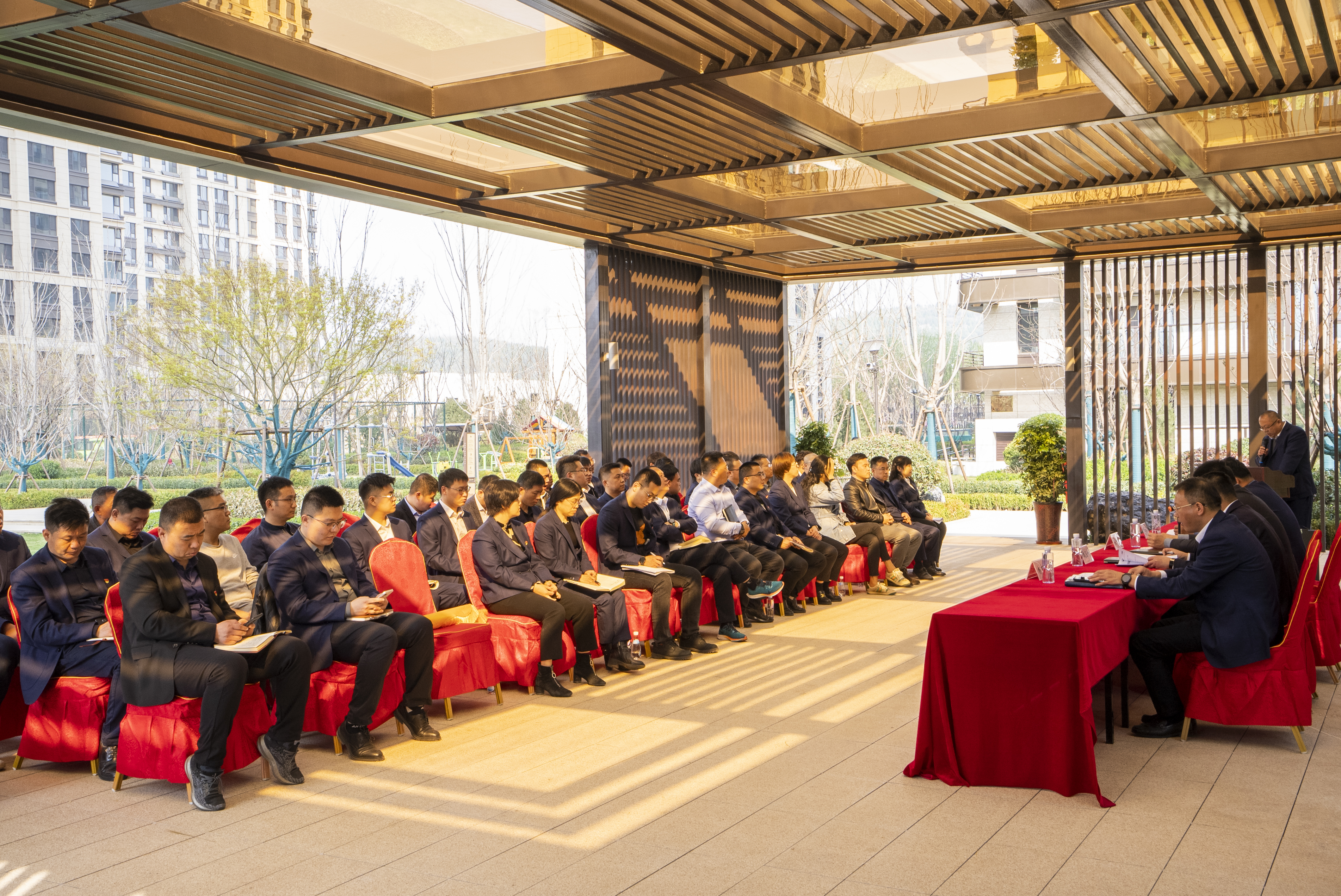 會(huì)前,與會(huì)人員參觀了天風(fēng)云墅二期建設(shè)情況,該項(xiàng)目通過“攻堅(jiān)奮戰(zhàn)160天、融心協(xié)力交好房”活動(dòng)實(shí)現(xiàn)提前7個(gè)月高質(zhì)量竣工交付的管理目標(biāo)。