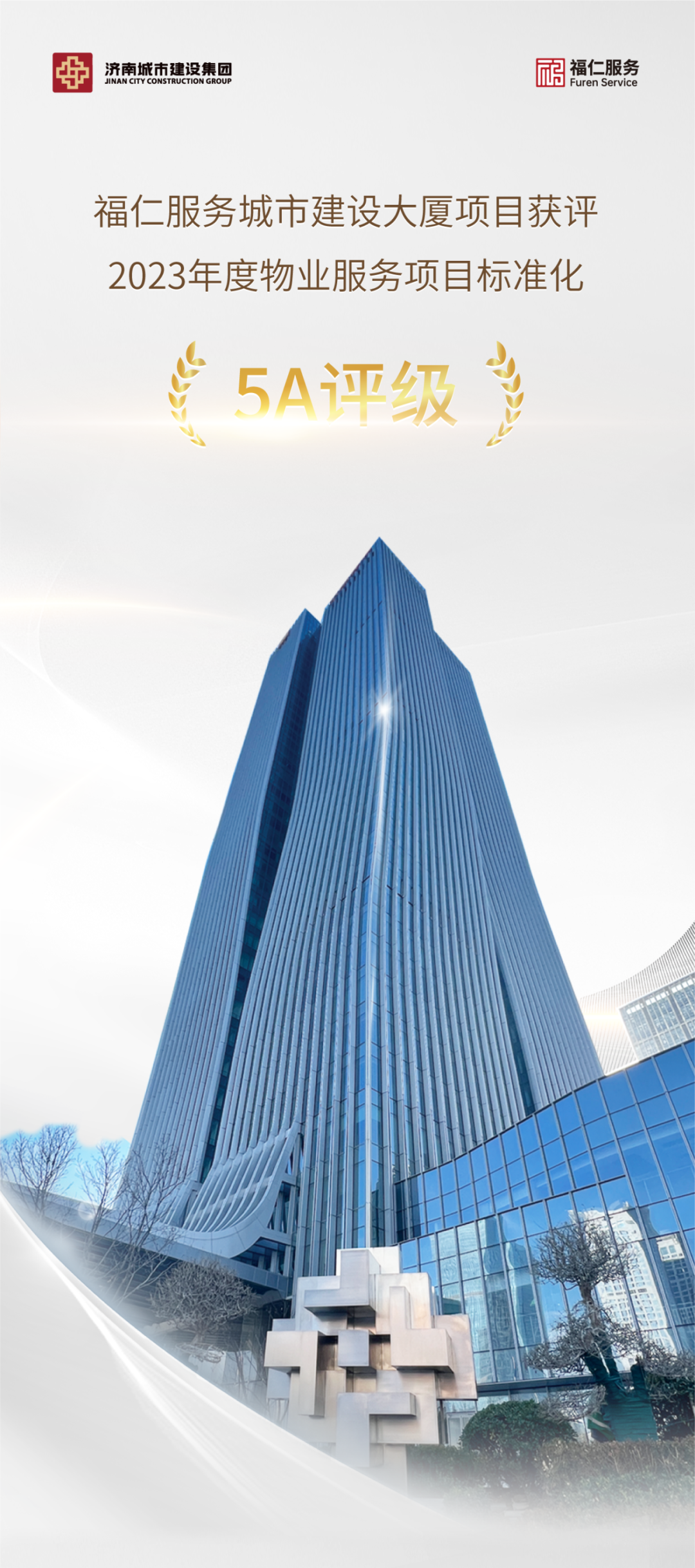 福仁服務城市建設大廈項目獲評2023年度物業(yè)服務項目標準化5A評級