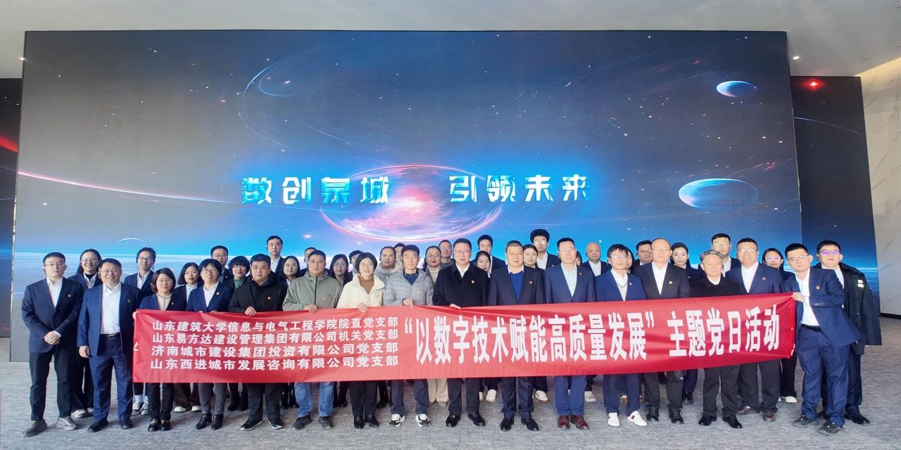 為深入貫徹數(shù)字濟南建設(shè)全面提升大會的精神,學(xué)習(xí)各行業(yè)在推進數(shù)字化建設(shè)方面取得的最新成果,11月28日,濟南城市建設(shè)集團投資有限公司黨支部、山東易方達建設(shè)管理集團有限公司機關(guān)黨支部、山東西進城市發(fā)展咨詢有限公司黨支部聯(lián)合山東建筑大學(xué)信息與電氣工程學(xué)院院直黨支部赴數(shù)字濟南體驗館,開展“以數(shù)字技術(shù)賦能高質(zhì)量發(fā)展”主題黨日活動。