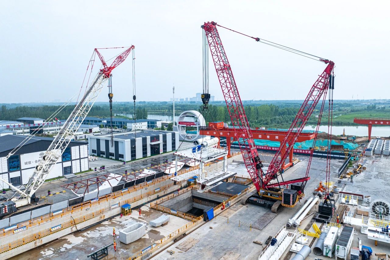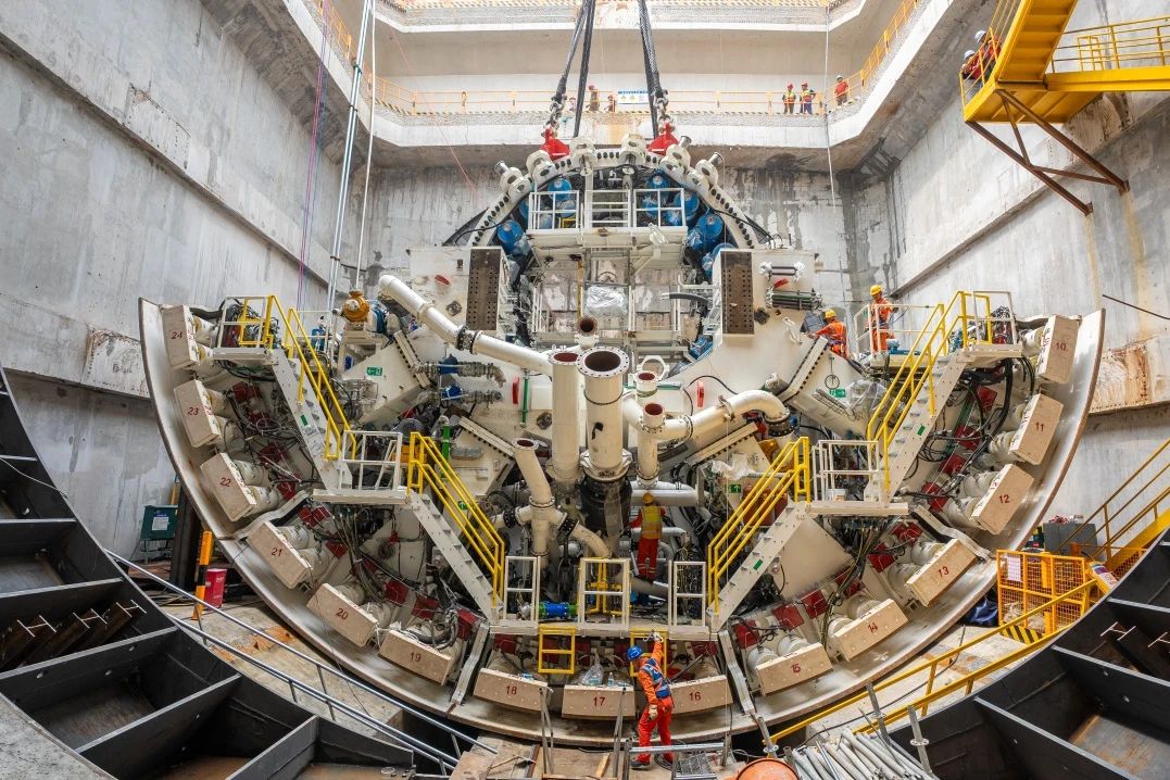 工程所采用的“山河號(hào)”盾構(gòu)機(jī),是世界在建最大直徑泥水平衡盾構(gòu)機(jī),最大開(kāi)挖直徑17.5米,總長(zhǎng)163米、重達(dá)5200噸、裝機(jī)總功率12580千瓦,裝配各類刀具306把,其中57把可實(shí)現(xiàn)滾刀齒刀互換,刀盤開(kāi)口率53%,最大限度滿足掘進(jìn)所面對(duì)的復(fù)雜地層,盾構(gòu)機(jī)總裝達(dá)到世界先進(jìn)水平。