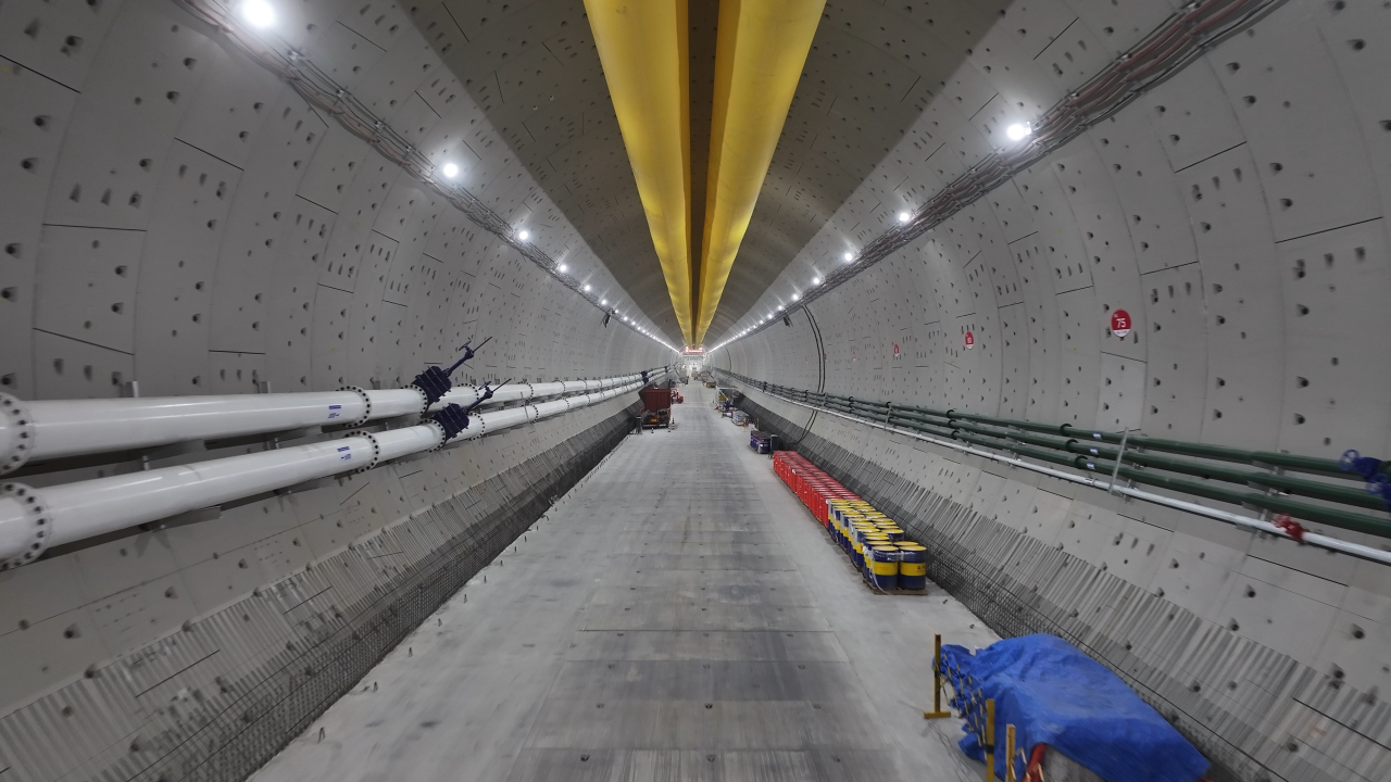為保證盾構(gòu)施工安全高效,項(xiàng)目打造“山河號”盾構(gòu)機(jī),盾構(gòu)機(jī)總長163米、重達(dá)5200噸、裝機(jī)總功率12580千瓦,是世界在建最大直徑泥水平衡盾構(gòu)機(jī),最大開挖直徑17.5米。裝配各類刀具306把,其中57把可實(shí)現(xiàn)滾刀齒刀互換,刀盤開口率53%,最大限度滿足掘進(jìn)所面對的復(fù)雜地層。