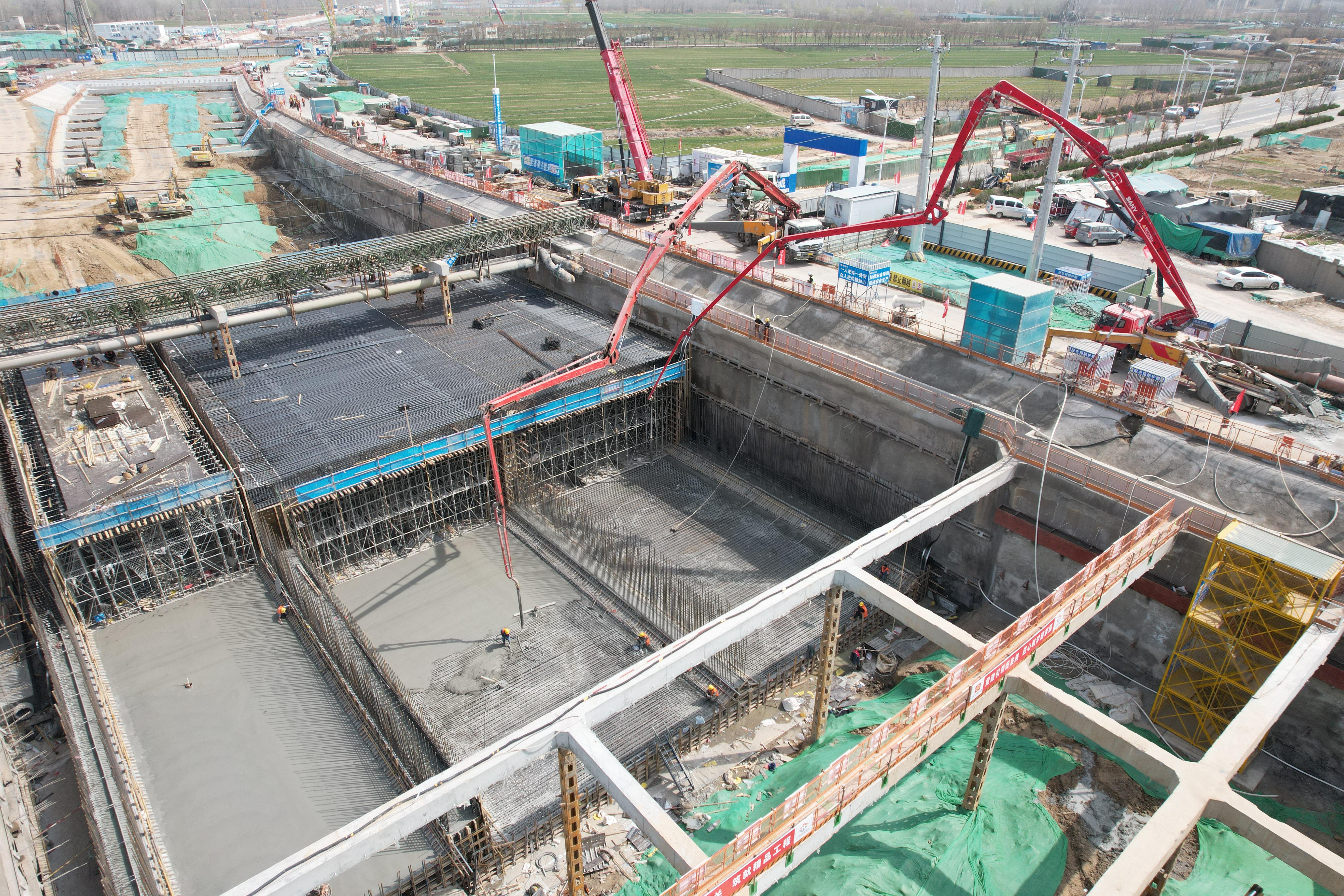 近日,建設(shè)集團(tuán)黃河大道二期二標(biāo)項(xiàng)目現(xiàn)場(chǎng),40余臺(tái)工程車輛穿梭如織,近400名建設(shè)者全力奮戰(zhàn),全力沖刺黃河大道二期二標(biāo)展屏路節(jié)點(diǎn)主體工程建設(shè)。