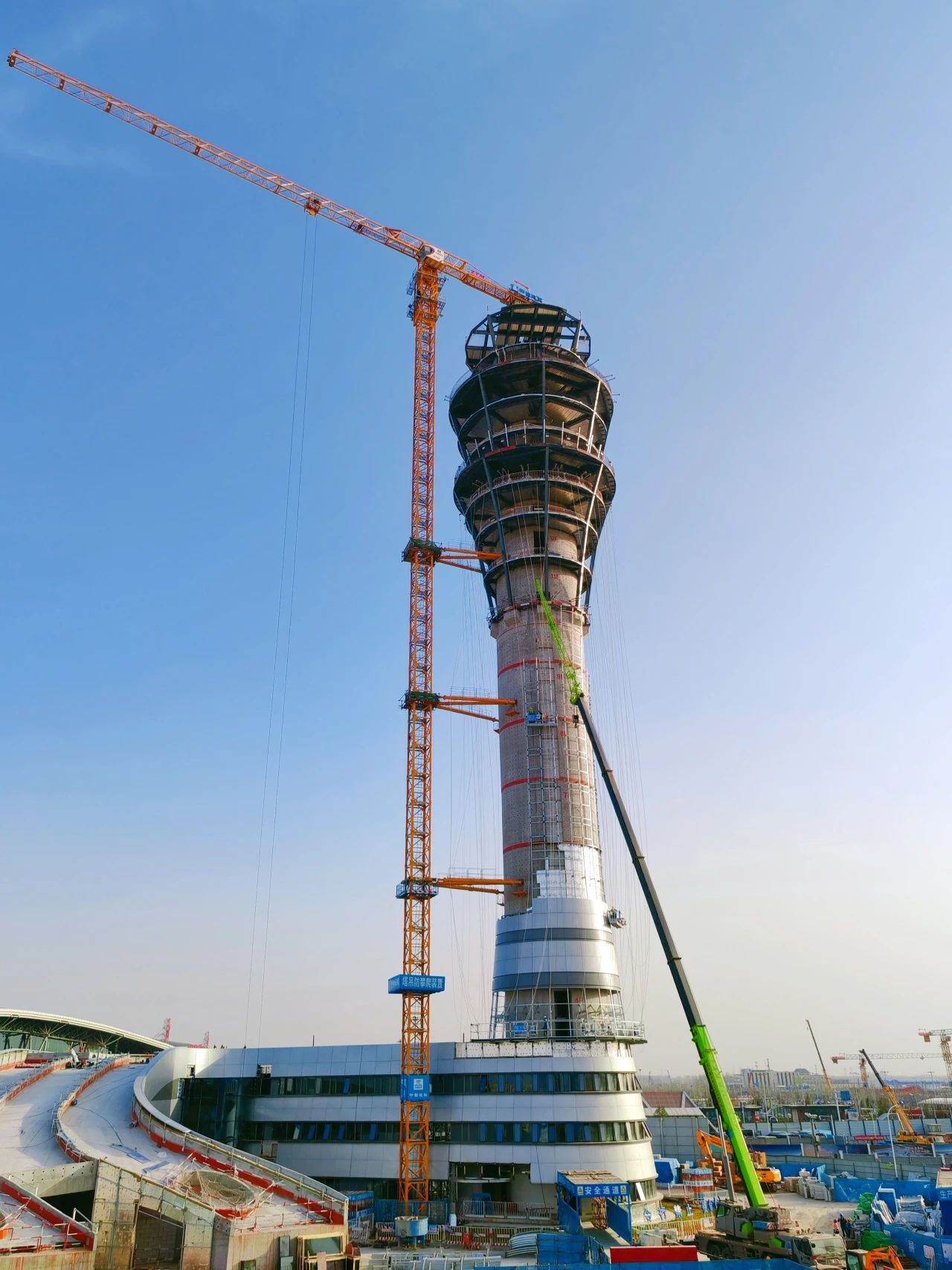 新建機(jī)場塔臺高度為99.5米,共19層,是國內(nèi)第一個具備三層指揮層的塔臺。其中19層為指揮層,可俯瞰整座機(jī)場范圍,17層和16層是機(jī)坪指揮以及空管的應(yīng)急指揮層。項目于2024年1月10日開工,2024年4月30日完成土方開挖,2024年6月5日完成結(jié)構(gòu)正負(fù)零,2025年1月21日塔臺核心筒封頂,2025年3月19日完成筒外鋼結(jié)構(gòu)吊裝。