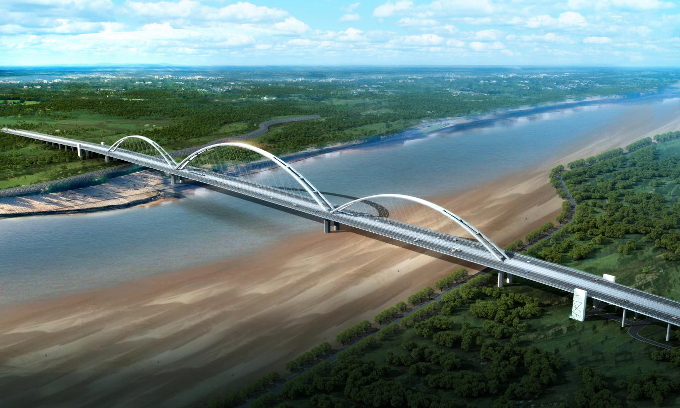 二標(biāo)段工程范圍起于美里北路交叉口以北,路線樁號K3+671.891,往北起橋跨越黃河后終于國道309交叉口處,路線樁號K6+735,包含黃河大橋主橋、大橋引橋、國道309互通立交,其中跨黃河段橋梁跨徑布置為(95+280+420+280+95)米,采用下承式系桿拱橋,主孔跨徑420米。